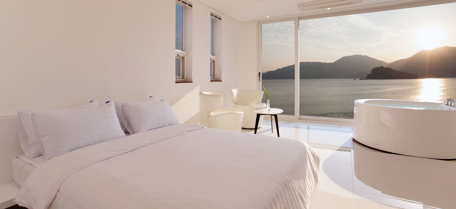 마치 지중해 해안선을 바라보듯 뷰에 집중할 수 있어, 창밖의 푸른바다는 당신의 마음을 사로잡을 것입니다.
