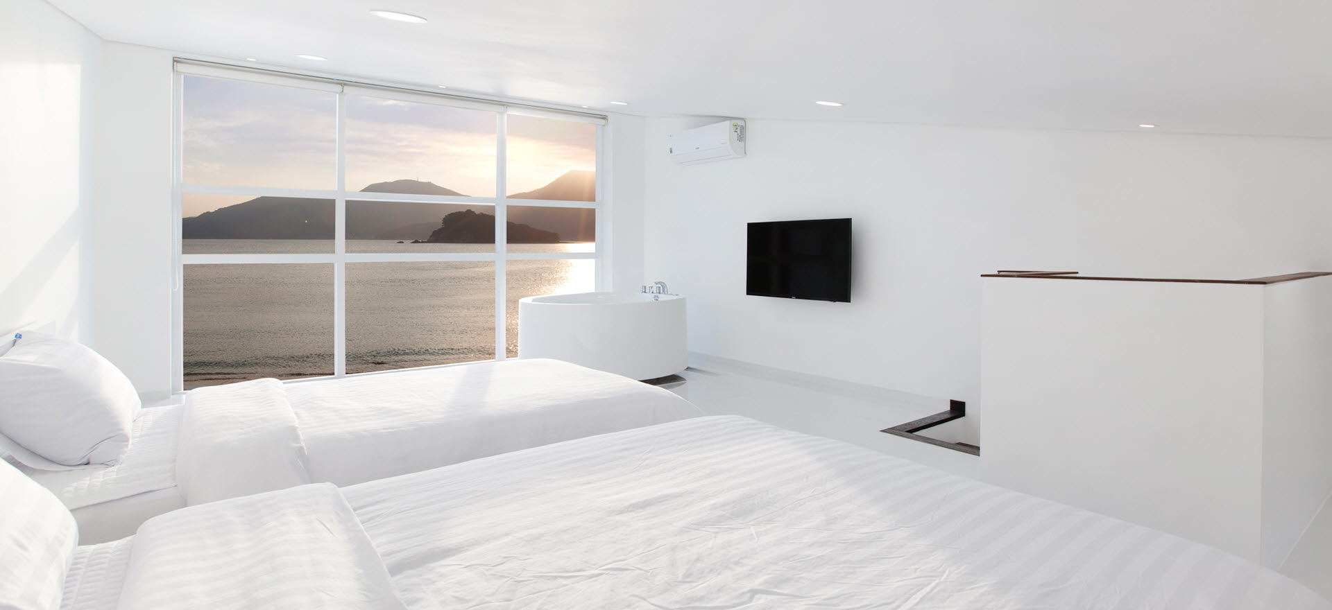 바다와 함께 추억할 수 있는 가족여행을 계획 하신다면, 화이트톤의 객실에서 하얀마음속에 푸른 바다의 추억을 담아보세요.