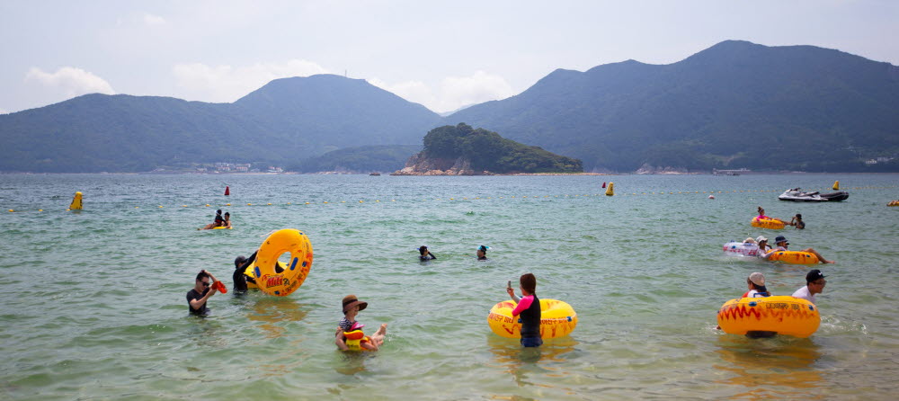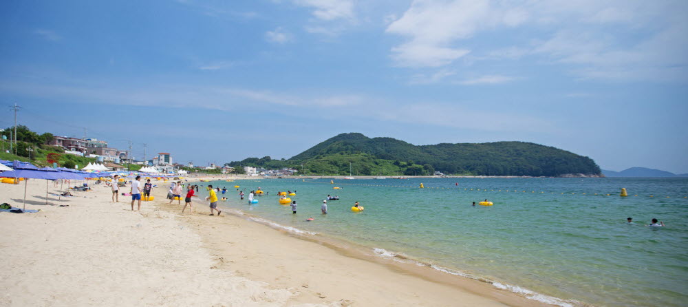 구조라해수욕장은 모래가 부드럽고 수심이 완만하며 수온도 해수욕하기에 가장 적당하며,